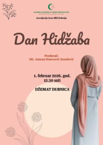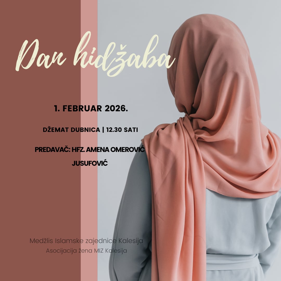 Asocijacija žena Medžlisa Islamske zajednice Kalesija povodom Dana hidžaba organizuje vjersku svečanost koja će se održati dana 1. februara 2026. godine (nedjelja), u džamiji Abdullaha bin Muhammeda Mu'minaha u Dubnici, nakon podne-namaza, 12:30 sati.